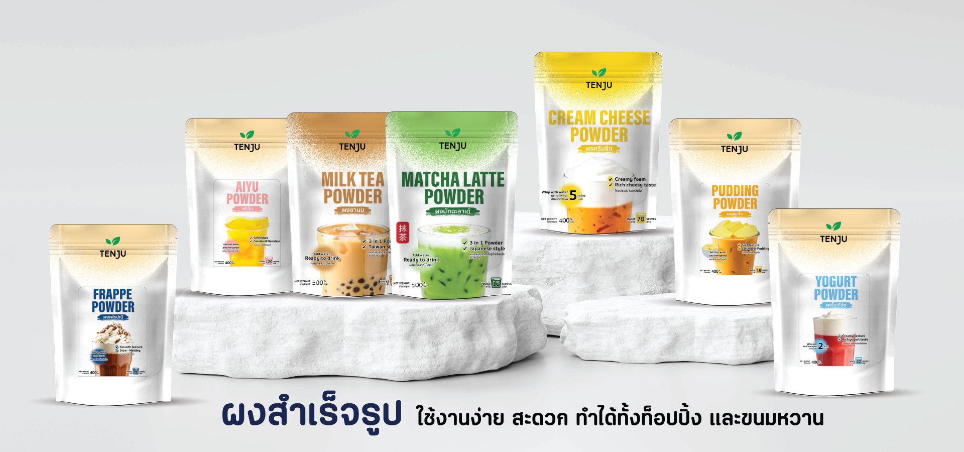 โจนส์กรุ๊ป เป็นผู้จัดจำหน่ายวัตถุดิบเครื่องดื่มที่ดีเยี่ยมจากแหล่งกำเนิดทั่วทุกมุมโลก อาทิเช่น วัตถุดิบชานม ผงมัทฉะ ผงโกโก้ดัทช์ ท็อปปิ้งตกแต่งเครื่องดื่มและขนมหวาน ภายใต้แนวคิด BEVERAGE INNOVATION ภายใต้แบรนด์ "TENJU" มีความหมายว่าเพดานในภาษาญี่ปุ่น เปรียบเสมือนสินค้าที่มีคุณภาพสูง