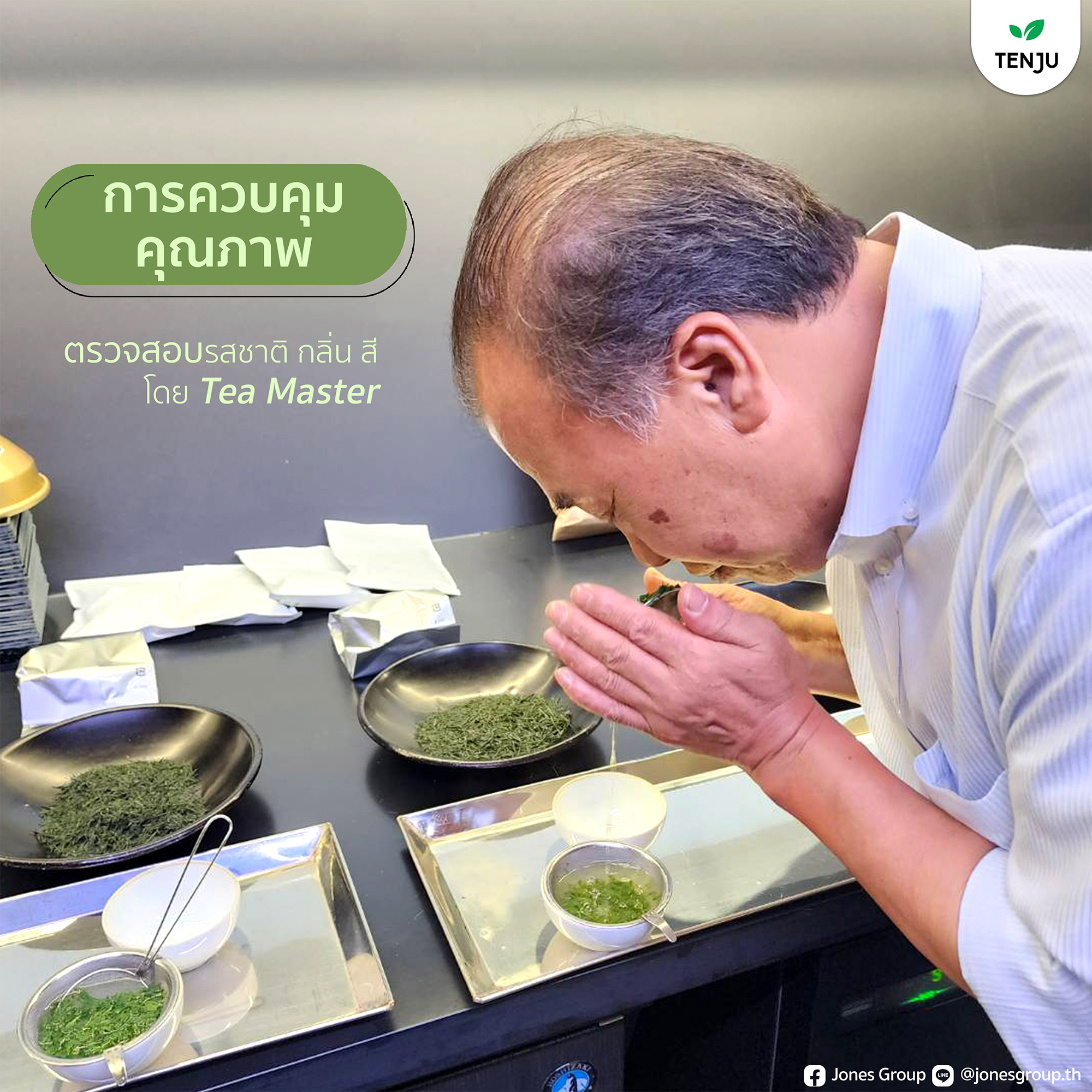 ผ่านการตรวจสอบ รสชาติ กลิ่น สี ของผงมัทฉะ โดย Tea Master ผลิตออกมาเป็น อูจิมัทฉะ และ โอกุระมัทฉะ