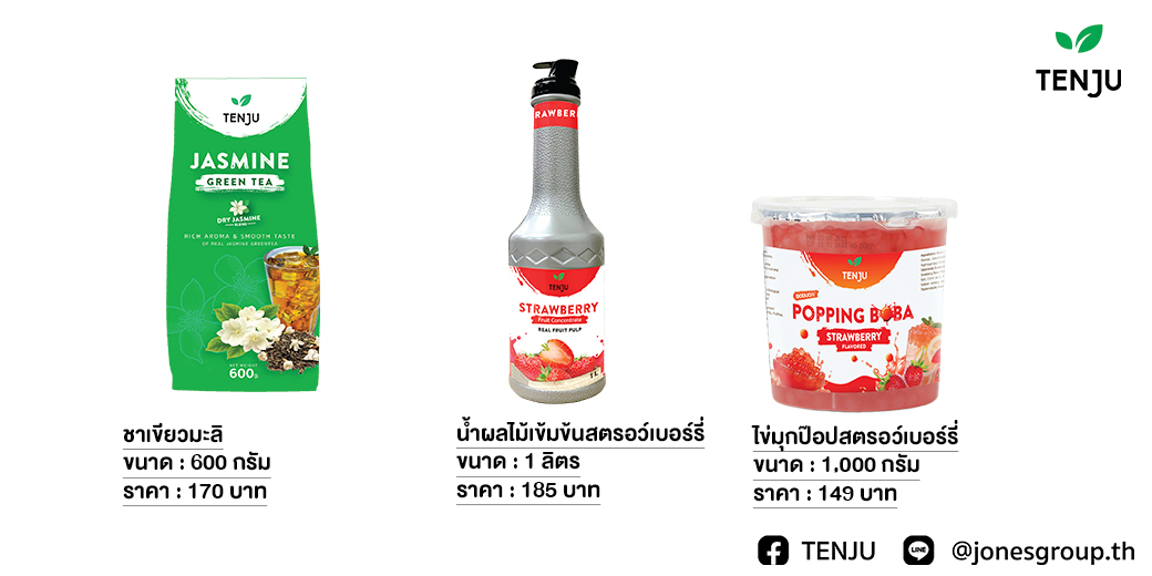 1.ใช้น้ำชาเขียวมะลิ 150 มล. ใส่น้ำผลไม้เข้มข้นสตรอว์เบอร์รี่ น้ำเชื่อม คนให้เข้ากัน