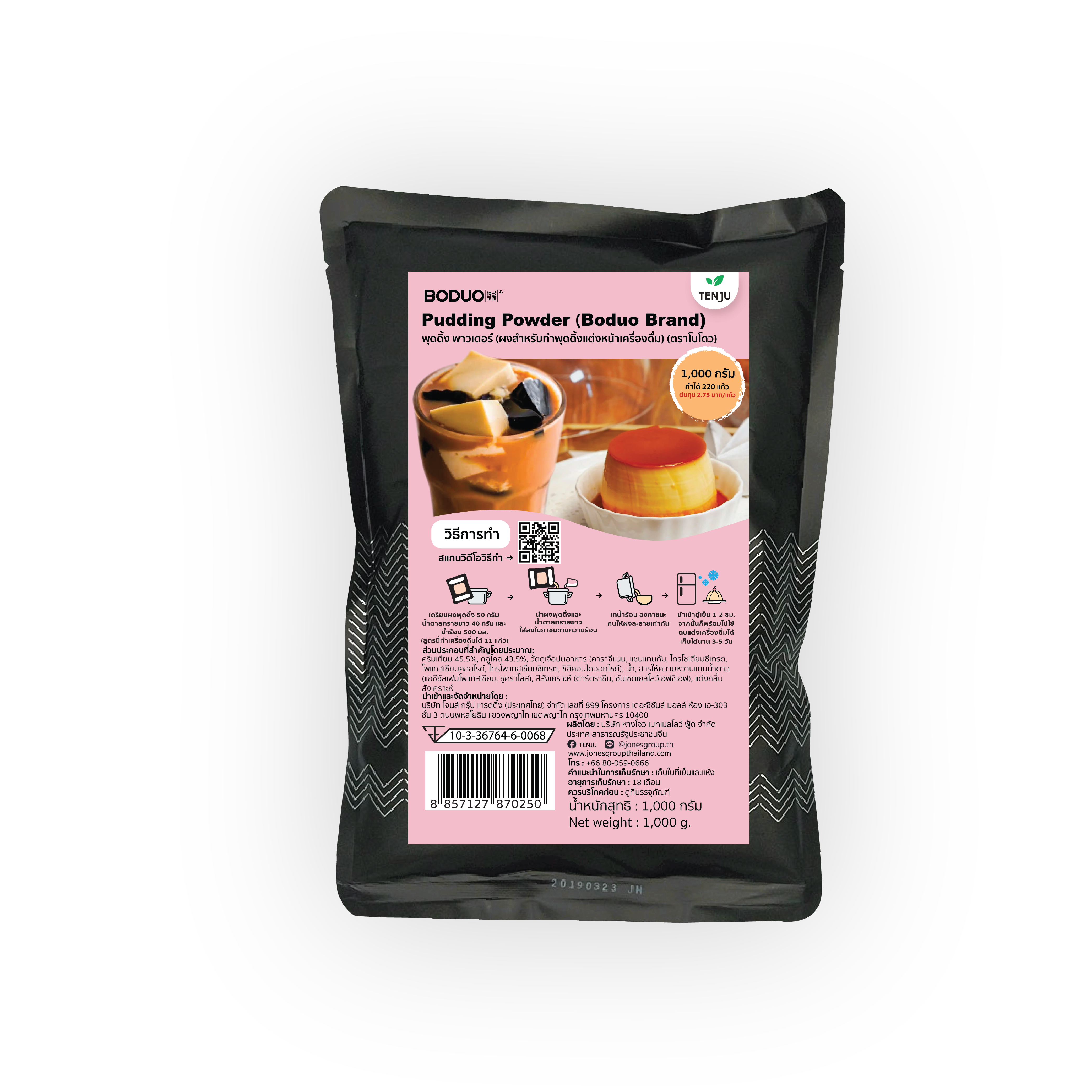 ผงพุดดิ้งสำเร็จรูปเป็นผงสำเร็จที่สามารถเพิ่มความอร่อยให้กับของหวานและเครื่องดื่มโดยเฉพาะชานมไข่มุกเพียงแค่นำมาต้มกับน้ำเดือด 2 นาที และทิ้งให้เซ็ทตัวในตู้เย็น 2-3 ชั่วโมง จะทำให้เนื้อสัมผัสเสมือน พุดดิ้งสด เนื้อเด้ง เนียนนุ่ม กลิ่นหอม รสชาติกลมกล่อมลงตัว
