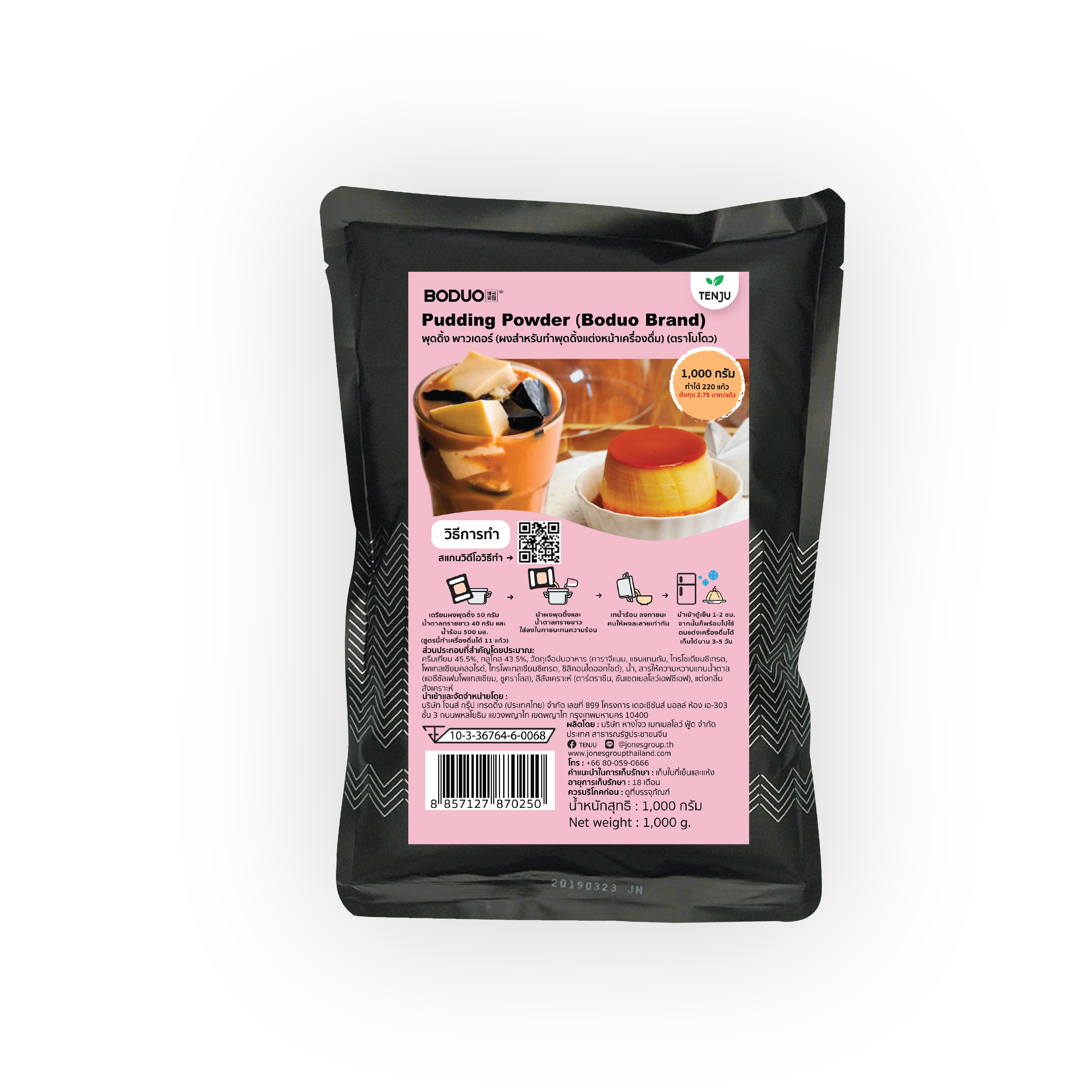 ผงพุดดิ้งสำเร็จรูปเป็นผงสำเร็จที่สามารถเพิ่มความอร่อยให้กับของหวานและเครื่องดื่มโดยเฉพาะชานมไข่มุกเพียงแค่นำมาต้มกับน้ำเดือด 2 นาที และทิ้งให้เซ็ทตัวในตู้เย็น 2-3 ชั่วโมง จะทำให้เนื้อสัมผัสเสมือน พุดดิ้งสด เนื้อเด้ง เนียนนุ่ม กลิ่นหอม รสชาติกลมกล่อมลงตัว